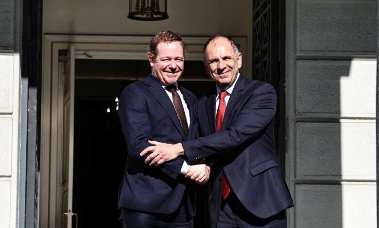 «Καλούμε το καθεστώς του Ιράν να απέχει από την επιβολή και εκτέλεση ποινών κατά πολιτών που διαδηλώνουν υπέρ της ελευθερίας», υπογράμμισε ο υπουργός Εξωτερικών Γιώργος Γεραπετρίτης, σε δηλώσεις του μετά τη συνάντησή του με τον Ολλανδό υπουργό Ασύλου, Μετανάστευσης και υπουργό Εξωτερικών της Ολλανδίας Ντέιβιντ φον Γουίλ (David van Weel), στην Αθήνα.