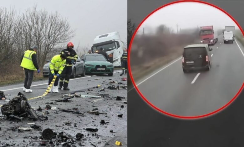 Στα σχετικά βίντεο που έχουν έρθει στο «φως», καταγράφεται ο οδηγός του βαν να πραγματοποιεί προσπέραση και, παρότι υπήρχε χρόνος να επιστρέψει στη λωρίδα του, να αλλάζει ανεξήγητα πορεία και να συγκρούεται μετωπικά με το φορτηγό.