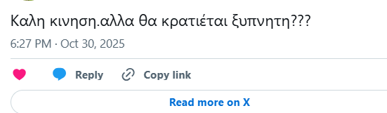 Την είδηση δεν υποδέχθηκαν με τον ίδιο ενθουσιασμό, ωστόσο, οι πολίτες με πλήθος χρηστών στο «Χ» να αντιδρούν για την εν λόγω… τοποθέτηση η οποία -αν μη τι άλλο- σπανίζει στην πολιτική ζωή του τόπου.