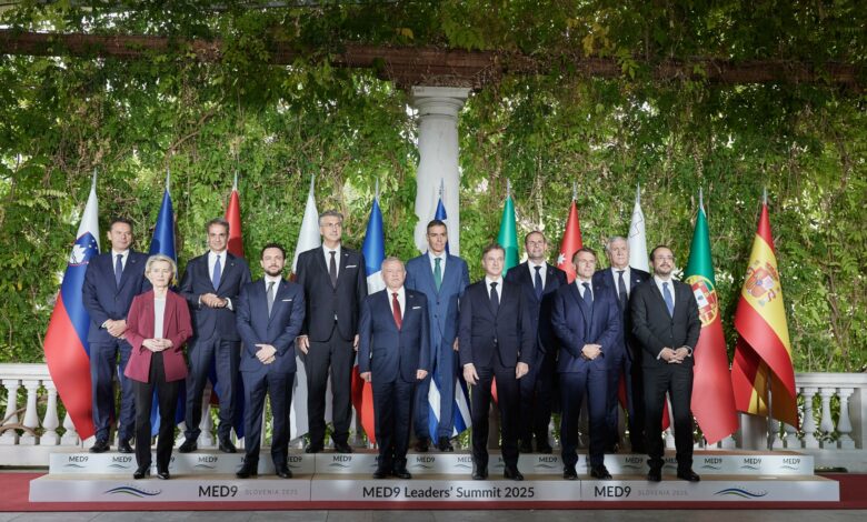 Οι ηγέτες της Γαλλίας, της Κύπρου, της Ελλάδας, της Κροατίας, της Ιταλίας, της Μάλτας, της Σλοβενίας, της Ισπανίας και της Πορτογαλίας, συνεδρίασαν σήμερα στο πλαίσιο του σχήματος MED9 για να συζητήσουν για τις προκλήσεις που επηρεάζουν την περιοχή τους.