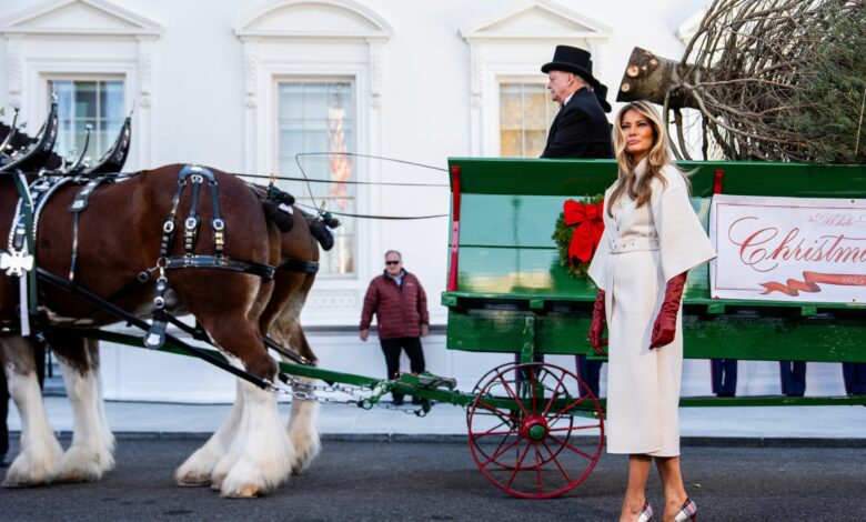 Φορώντας μπεζ παλτό και σκούρα κόκκινα γάντια, η Μελάνια περιηγήθηκε γύρω από την άμαξα, χαιρέτησε τους οδηγούς και τόνισε πόσο «όμορφο δέντρο» είναι. Το δέντρο θα τοποθετηθεί στο Blue Room του Λευκού Οίκου, όπου θα διακοσμηθεί για τις Χριστουγεννιάτικες εκδηλώσεις.