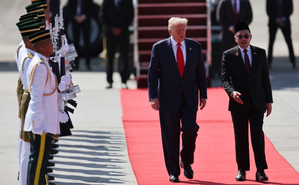 Η περιοδεία του Τραμπ ξεκίνησε από τη Μαλαισία, όπου τον υποδέχθηκαν μαχητικά αεροσκάφη και παραδοσιακοί χορευτές. Ο πρωθυπουργός Ανουάρ Ιμπραήμ, που επέβαινε στην αυτοκινητοπομπή του, αστειεύτηκε λέγοντας: «Εγώ ήμουν στη φυλακή, εσύ παραλίγο να πας». Ο Ιμπραήμ είχε φυλακιστεί δύο φορές για πολιτικούς λόγους, με προκάλυμμα κατηγορίες για διαφθορά και… σοδομισμό.