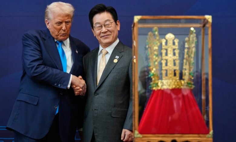 Στη Νότια Κορέα, ο Τραμπ έλαβε από τον Πρόεδρο Λι Τζε Μιούνγκ ένα χρυσό στέμμα, αντίγραφο εκείνου του βασιλείου της Σίλα, ενός από τα τρία αρχαία βασίλεια της χώρας.