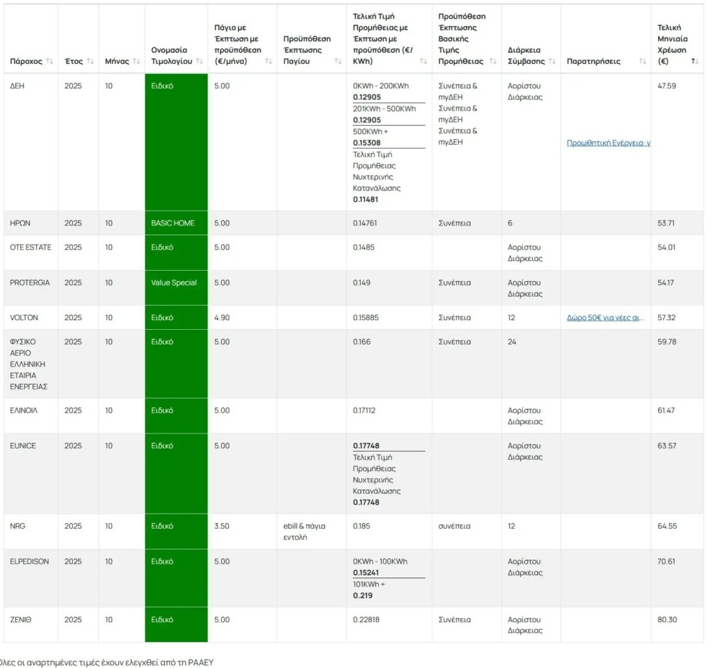Το σύνολο των τιμολογίων από όλους τους προμηθευτές έχουν αναρτηθεί στην ιστοσελίδα της Ρυθμιστικής Αρχής (https://energycost.gr).
