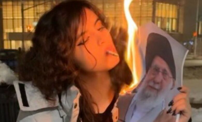 Las mujeres de Irán vuelven tendencia fotografiarse prendiendo un cigarrillo con la foto en llamas del líder supremo, Ali Jamenei.