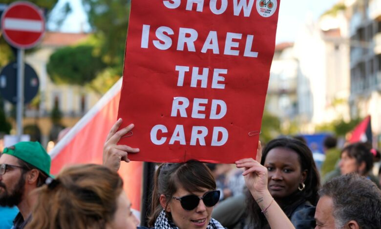 Η εθνική ομάδα του Ισραήλ αντιμετώπισε επίσης διαμαρτυρίες όταν αντιμετώπισε τη Νορβηγία στο Όσλο το Σάββατο.