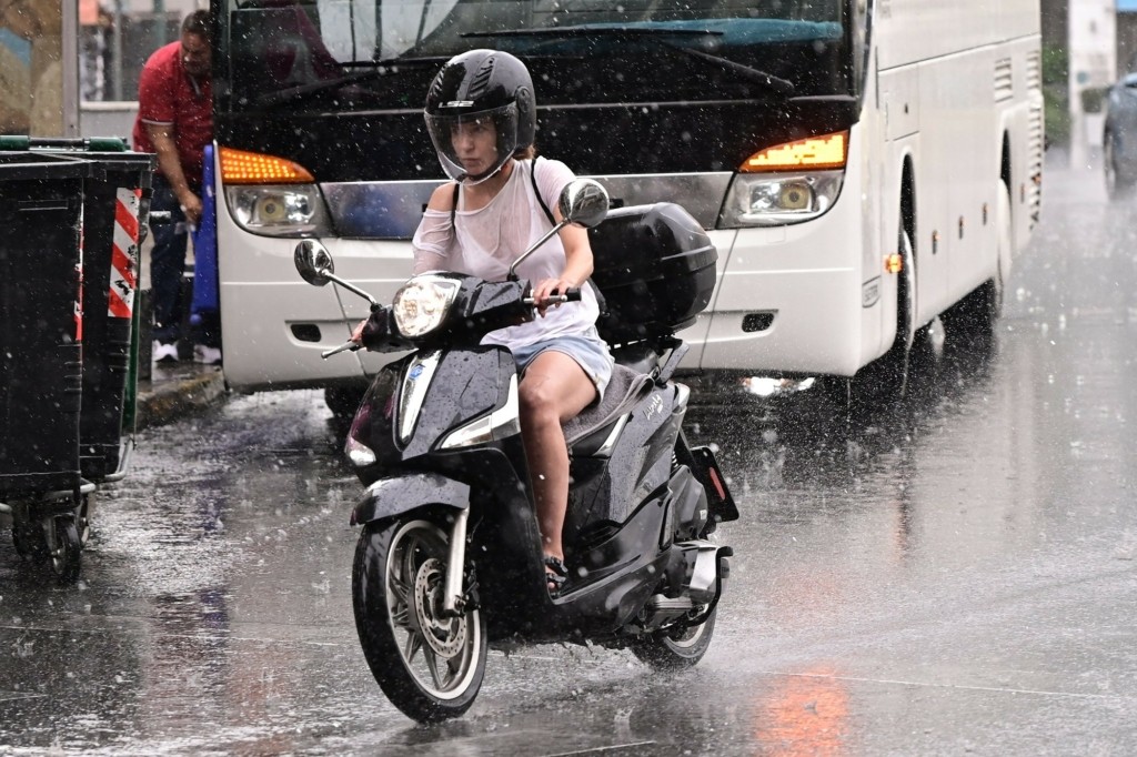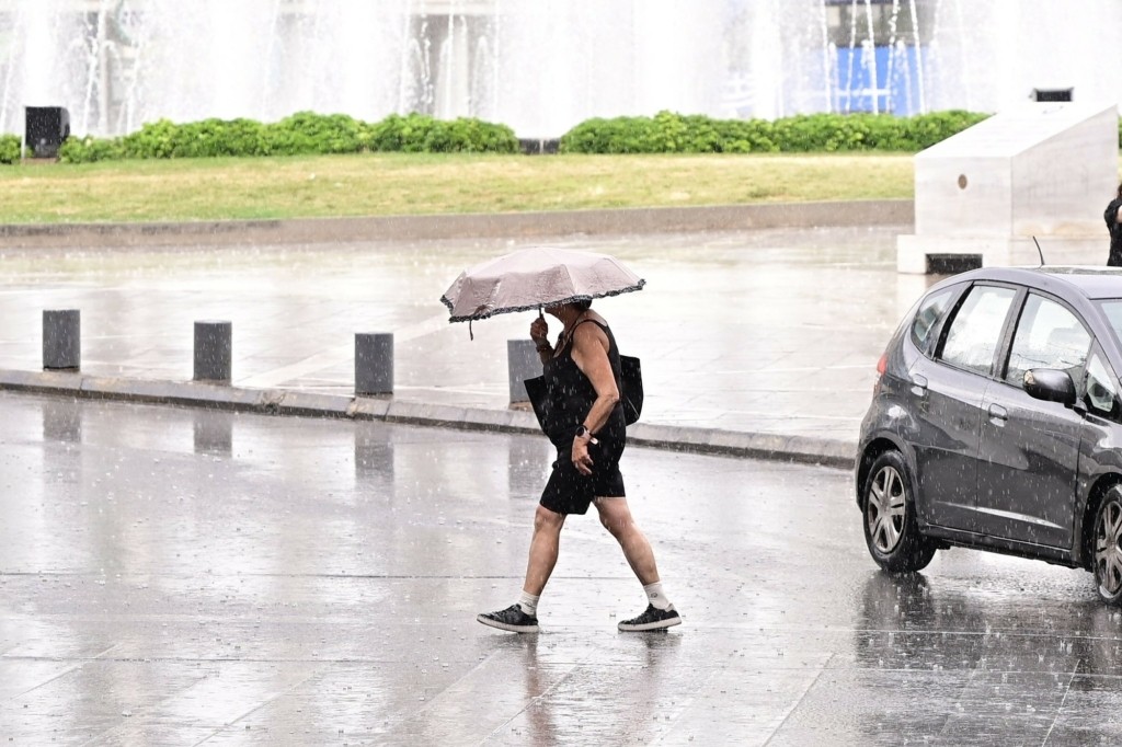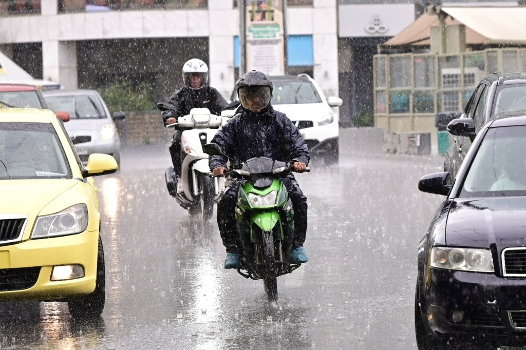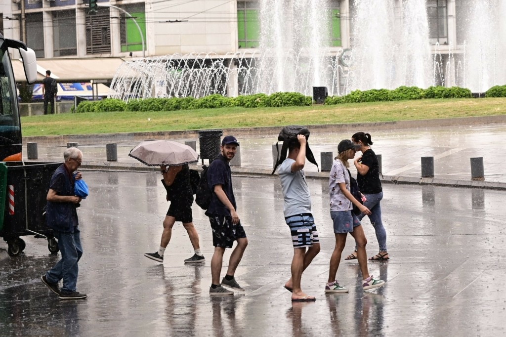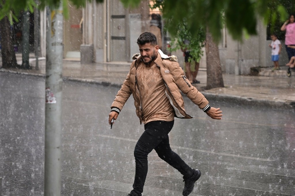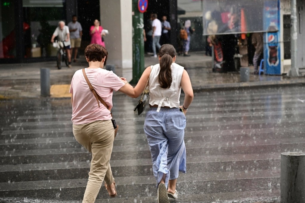 Μία ξαφνική μπόρα αιφνιδίασε τους περαστικούς από το κέντρο της Αθήνας, το μεσημέρι της Τρίτης.