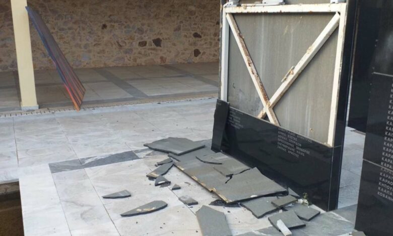 Οι καταστροφές εντοπίστηκαν στη μοναδική μαρμάρινη πλάκα που αναφέρει την εκτέλεση των 200 κομμουνιστών την Πρωτομαγιά του 1944.