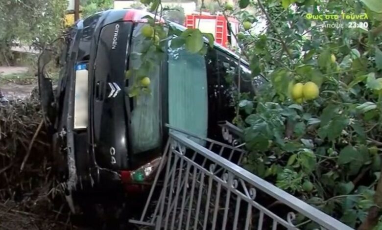 Κακοκαιρία Byron: Μεγάλες καταστροφές στο Γύθειο – Αυτοκίνητο παρασύρθηκε από χείμαρρο και κατέληξε σε βεράντα σπιτιού (Video)