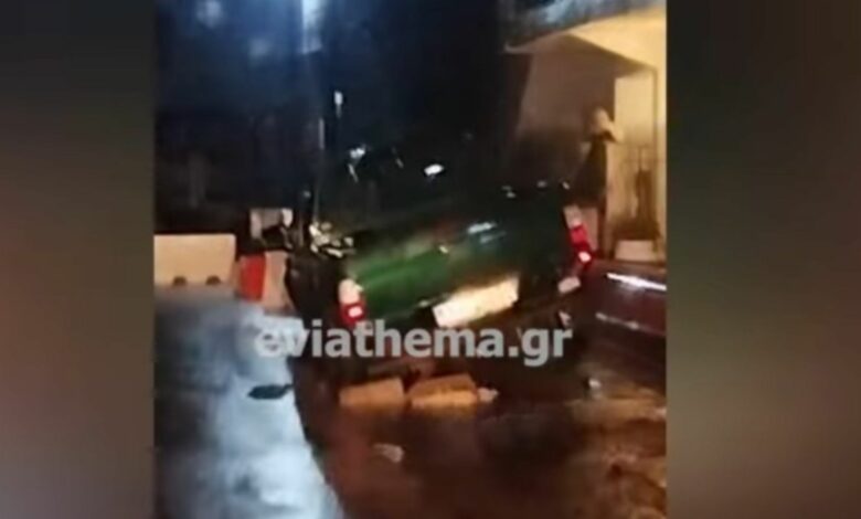 Κακοκαιρία στην Εύβοια: Άνοιξε ο δρόμος και κατάπιε δύο αυτοκίνητα στην Αμάρυνθο (Video)