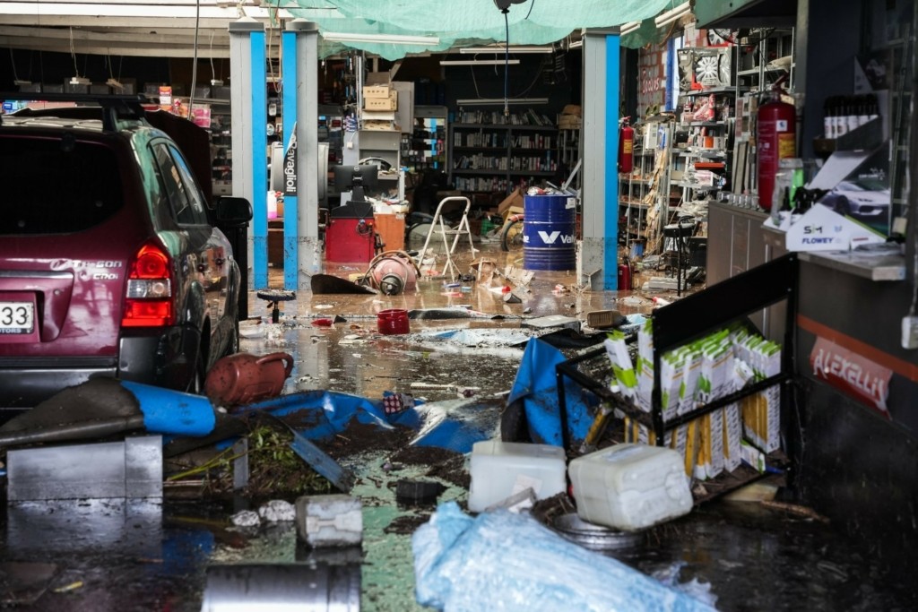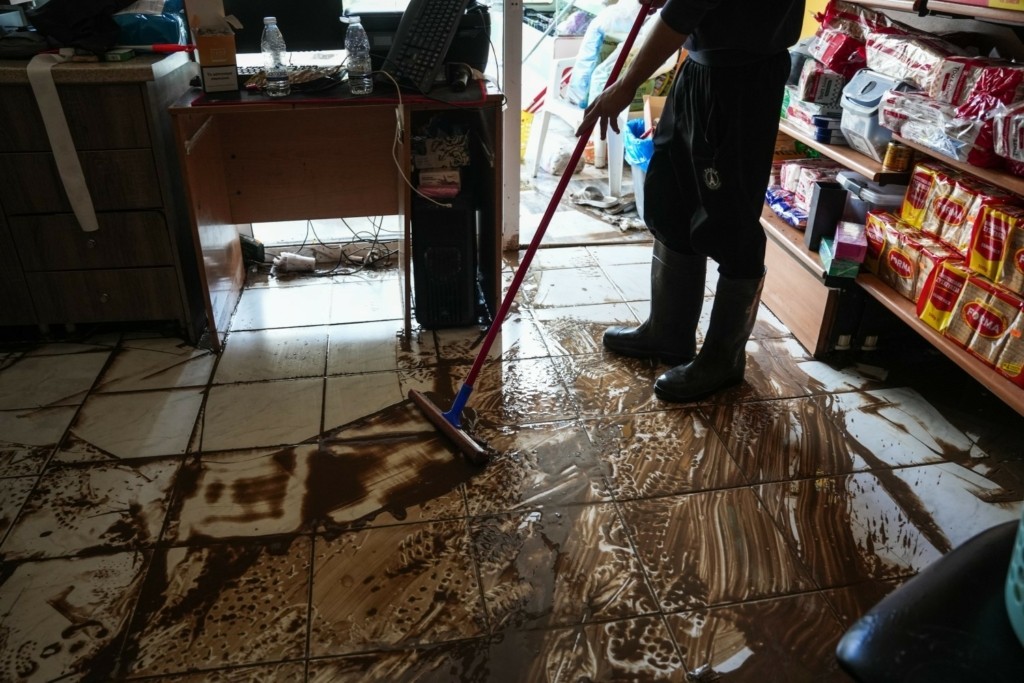 Από τις έντονες βροχοπτώσεις και τις πλημμύρες που ακολούθησαν, επιχειρήσεις και κατοικίες βρέθηκαν «πνιγμένες» στη λάσπη, με τους κατοίκους να προσπαθούν να σώσουν τα υπάρχοντά τους.