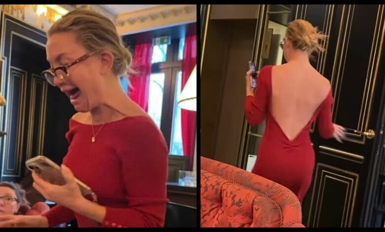 Το εν λόγω βίντςο αποτυπώνει την αντίδρασή της μόλις μαθαίνει ότι είναι υποψήφια. Όπως βλέπουμε, η ηθοποιός που βρισκόταν εκείνη τη στιγμή σε ένα εστιατόριο φαίνεται να πετάγεται από την καρέκλα της, κρατώντας στο χέρι το κινητό της, έχοντας μόλις ενημερωθεί για την υποψηφιότητά της.