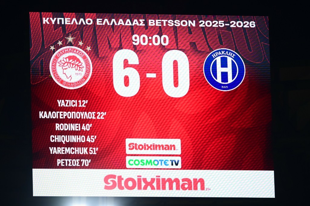Κύπελλο Ελλάδας: Ο Ολυμπιακός συνέτριψε τον Ηρακλή με 6-0 και πέρασε αήττητος στην 8άδα