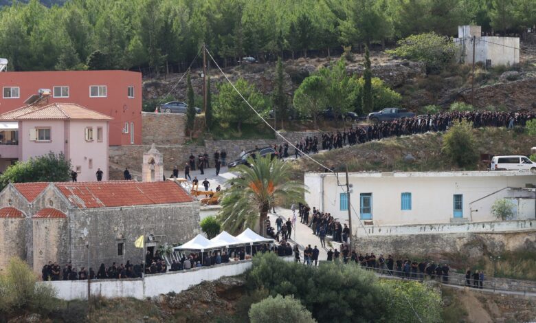 Πλήθος κόσμου έδωσε το ”παρών” στην κηδεία στον Ιερό Ναό Ευαγγελισμού της Θεοτόκου, με τις αστυνομικές δυνάμεις να είναι ενισχυμένες και παραταγμένες σε διάφορα σημεία του χωριού αλλά και της ευρύτερης περιοχής.