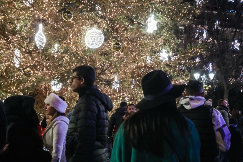 Πλήθος κόσμου συγκεντρώθηκε στην πλατεία Συντάγματος για τις εκδηλώσεις του Δήμου Αθηναίων για την έλευση του νέου έτους, παρά το τσουχτερό κρύο και το χιονόνερο, που έπεφτε από αργά το βράδυ της παραμονής της Πρωτοχρονιάς.