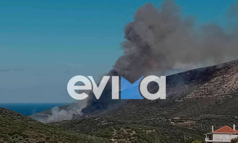 Μεγάλη φωτιά στην Εύβοια κοντά σε σπίτια