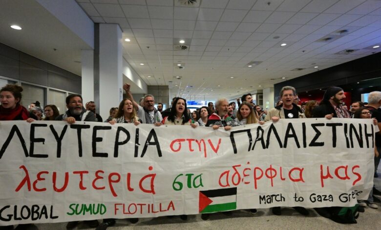 Η Γκρέτα Τούνμπεργκ και 170 μέλη του Παγκόσμιου Στόλου Sumud έγιναν δεκτοί από ένα τεράστιο πλήθος στην Αθήνα μετά την απαγωγή τους από τους ισραηλινούς.