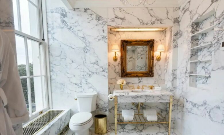 «Το ανακαινισμένο μπάνιο Λίνκολν στον Λευκό Οίκο, εξαιρετικά γυαλισμένο, αγαλματένιο μάρμαρο!», δηλώνει με περηφάνεια ο Ντόναλντ Τραμπ.
