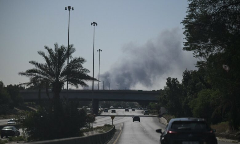 Motorists drive along a street as smoke rises from a reported Iranian strike in the area where the US Embassy is located in Kuwait City pic.twitter.com/DvvUQSFJVX