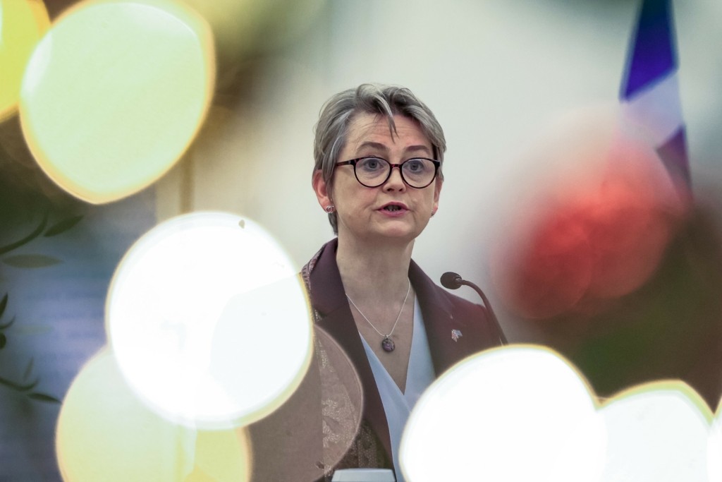 Από την πλευρά της η Υπουργός Εξωτερικών, Κοινοπολιτειακών και Αναπτυξιακών Υποθέσεων του Ηνωμένου Βασιλείου, Yvette Cooper στις δηλώσεις της αναφέρθηκε στις-όπως είπε- βαθιές ιστορικές σχέσεις και δεσμούς των δυο χωρών και χαρακτήρισε την επίσκεψη της δείγμα της εκτίμησης της χώρας της στη συνεργασία με την Ελλάδα. Είπε ότι υπάρχουν κοινά συμφέροντα σε πολλούς τομείς, όπως το Μεταναστευτικό και η Ουκρανία, εξέφρασε την ισχυρή όπως είπε- υποστήριξή της στο λαό της Ουκρανίας «έναντι της ρωσικής επιθετικότητας» και είπε ότι πρέπει να αυξηθεί η πίεση στη Ρωσία προκειμένου να εξασφαλιστεί δίκαιη ειρήνη με κυρίαρχη Ουκρανία. Κατηγόρησε τον Ρώσο πρόεδρο Πούτιν ότι επιθυμεί την κλιμάκωση του πολέμου, χαρακτήρισε σημαντικό το να επιτευχθεί πρόοδος στην «κινητοποίηση περιουσιακών στοιχείων» της Ρωσίας για να ασκηθεί πίεση στη Μόσχα να έρθει στο τραπέζι για αναζήτησή ειρήνης. Παράλληλα, είπε ότι αυτή τη βδομάδα η βρετανική κυβέρνηση έκανε κίνηση, ώστε να χρησιμοποιήσει τα χρήματα από την πώληση της ποδοσφαιρικής ομάδας Τσέλσι για ανθρωπιστική βοήθεια στην Ουκρανία.