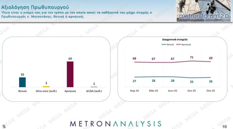 Τη δυσαρέσκεια της κοινής γνώμης για τους κυβερνητικούς χειρισμούς αποτυπώνουν τα ευρήματα της δημοσκόπησης της Metron Analysis για το MEGA.