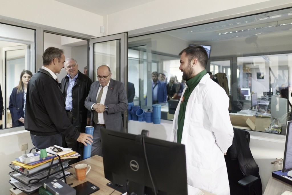 Στη συνέχεια, ο πρωθυπουργός επισκέφθηκε την εταιρεία Interplast, η οποία παράγει ολοκληρωμένα συστήματα ύδρευσης, θέρμανσης, κλιματισμού και αποχέτευσης στους τομείς της οικοδομής, των τεχνικών έργων και των βιομηχανικών εγκαταστάσεων. Ο Κυριάκος Μητσοτάκης ξεναγήθηκε από τον ιδιοκτήτη της, Τάσο Ριζόπουλο, στην εργοστασιακή μονάδα, ενώ ενημερώθηκε για τη διαδικασία παραγωγής. Η Interplast, που απασχολεί 140 εργαζόμενους, εξάγει τα προϊόντα της σε πάνω από 75 χώρες.