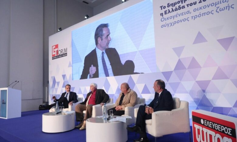 Ο Κυριάκος Μητσοτάκης βρέθηκε σε πάνελ για το δημογραφικό που διοργάνωσε το ΕΤ-Forum του Ελεύθερου Τύπου, μαζί με τον Δρ Δημήτριο Κοτσιφάκο, πολύτεκνο, Διευθυντής Εργαστηριακού Κέντρου της Επαγγελματικής Εκπαίδευσης και Κατάρτισης και τον Θεόδωρος Παπασάικα, πολύτεκνο, Οικονομολόγος, Υπάλληλος της Τράπεζας της Ελλάδος.