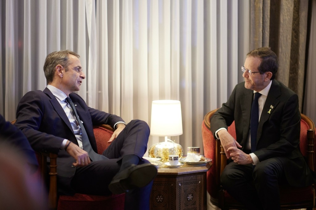 Να είστε βέβαιος, κ. Πρόεδρε, ότι οι στρατηγικές σχέσεις μεταξύ της Ελλάδας και του Ισραήλ δεν ήταν ποτέ πιο ισχυρές, και αν συμπεριλάβετε και την Κύπρο, όπως είπατε, έχετε τρεις χώρες που συνεργάζονται για μια ειρηνική και σταθερή Ανατολική Μεσόγειο. Αυτή πρέπει να είναι η ελπίδα όλων μας, ειδικά τώρα που πλησιάζουν τα Χριστούγεννα, μια γιορτή ειρήνης και φιλίας, και αυτό το πνεύμα θέλουμε να υπάρχει σε αυτή την ταραγμένη περιοχή του κόσμου. Και πάλι, σας ευχαριστώ πολύ», τόνισε ο Κυριάκος Μητσοτάκης.