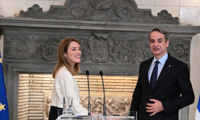 Το μήνυμα ότι οι διεθνείς συνθήκες απαιτούν από την ΕΕ να… ενηλικιωθεί έστειλε ο πρωθυπουργός, Κυριάκος Μητσοτάκης, μετά τη συνάντησή του στο Μέγαρο Μαξίμου με την πρόεδρο του Ευρωπαϊκού Κοινοβουλίου, Ρομπέρτα Μέτσολα.