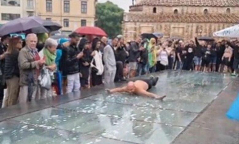 Έξω από τον σταθμό του Μετρό στο Μοναστηράκι, οι Ολλανδοί οπαδοί μετέτρεψαν τον βρεγμένο δρόμο σε… νεροτσουλήθρα, και μάλιστα φρόντισαν να απαθανατίσουν τις στιγμές με τα κινητά τους, αφού το διασκέδασαν τόσο.