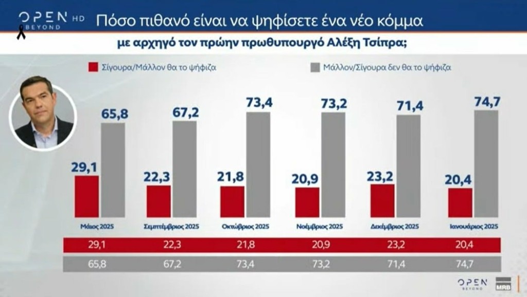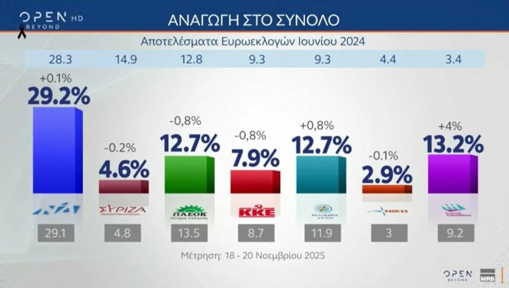 MRB: «Έπεσε» στην τρίτη θέση το ΠΑΣΟΚ, πίσω από την Πλεύση Ελευθερίας – Tο κόμμα Καρυστιανού «κύριος αντίπαλος της ΝΔ»
