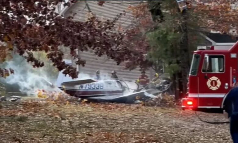 Οι ερευνητές λένε ότι το τετραθέσιο αεροσκάφος 1964 Mooney M20E προσέκρουσε σε ένα δέντρο πριν καταλήξει λίγο έξω από ένα σπίτι. Ένα από τα φτερά του αεροσκάφους μπλέχτηκε στο δέντρο πριν το συντρίμμια πάρουν φωτιά.