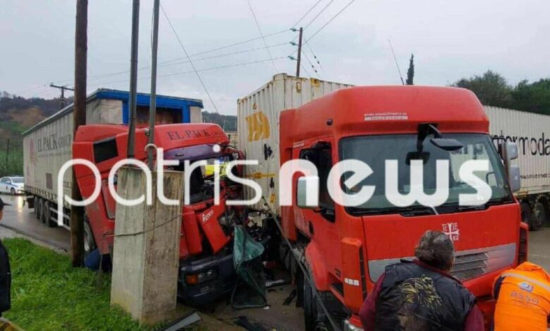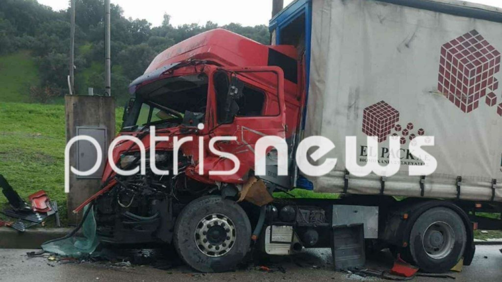 Νταλίκες συγκρούστηκαν στην Εθνική Οδό Πατρών–Πύργου, ένας τραυματίας (photos)