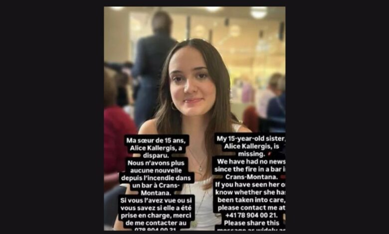 Ο αδελφός της Αλίκης Καλλέργη, που διασκέδαζε στο «Le Constellation» του Κραν Μοντανά της Ελβετίας που πήρε φωτιά, διέψευσε ότι εντοπίστηκε η σορός της.