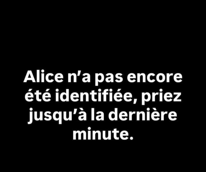 «Η Αλίκη δεν έχει ακόμη ταυτοποιηθεί, προσευχηθείτε μέχρι το τελευταίο λεπτό» έγραψε ο Ρομέν Καλλέργης στο Instagram.