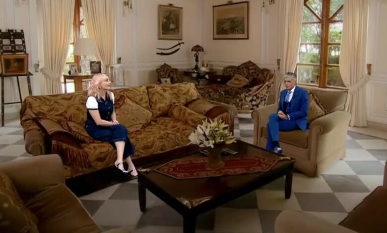 Με τη βοήθεια των γνωστών γραφικών της εκπομπής – που ανά διαστήματα γίνονται θέμα συζήτησης στα social media, αφού ο δημοσιογράφος «τρυπώνει» σε όλα τα πιθανά και απίθανα μέρη που αφορούν στην επικαιρότητα –, ο Νίκος Ευαγγελάτος και η Σμαράγδα Καρύδη βρέθηκαν να συζητούν στο σαλόνι της «Ντάλιας Χατζηαλεξάνδρου» – όπως ήταν το όνομα του ρόλου που υποδύθηκε η Σμαράγδα Καρύδη στην κωμική σειρά.