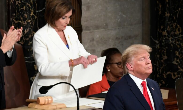 Η Πελόζι είναι σφοδρή επικρίτρια του Τραμπ από την προηγούμενη θητεία του Ρεπουμπλικάνου στον Λευκό Οίκο (2017-2021).