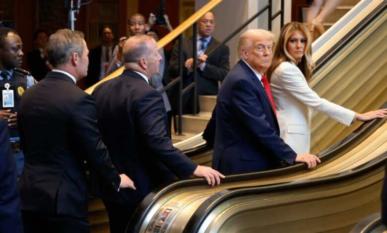 Τα απρόοπτα ξεκίνησαν από την άφιξη του προεδρικού ζεύγους των ΗΠΑ στην έδρα του ΟΗΕ στη Νέα Υόρκη, όταν σταμάτησε απότομα η κυλιόμενη σκάλα την ώρα που ανέβαιναν ο Ντόναλντ Τραμπ και η σύζυγός του Μελάνια. Διατηρώντας την ισορροπία τους, ανέβηκαν τα σκαλιά.