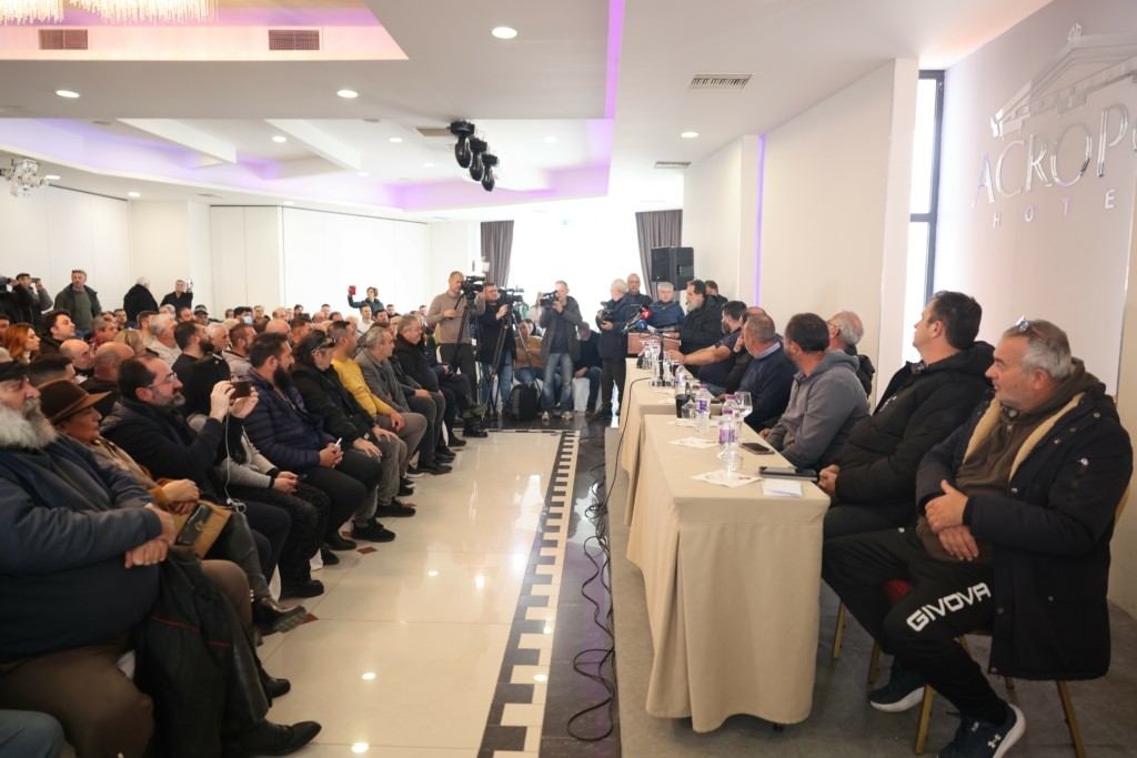 Η πανελλαδική σύσκεψη μπλόκων βρίσκεται σε εξέλιξη αυτή την ώρα στον Λευκώνα Σερρών, με τους αγρότες να επικυρώνουν τις αποφάσεις τους για κλιμάκωση. Η αίθουσα του ξενοδοχείου είναι κατάμεστη από αγρότες, κτηνοτρόφους κι άλλους παραγωγούς που έχουν συγκεντρωθεί για να αποφασίσουν συντονισμένα για το μέλλον των κινητοποιήσεών τους και αναμένεται να λάβουν αποφάσεις και να αποφασίσουν αν θα προσέλθουν σε διάλογο με την κυβέρνηση.