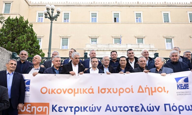 Οι δήμαρχοι έξω από τη Βουλή διαμαρτύρονται για τον κρατικό προϋπολογισμό – Δούκας: «Υψώνουμε το ανάστημά μας»