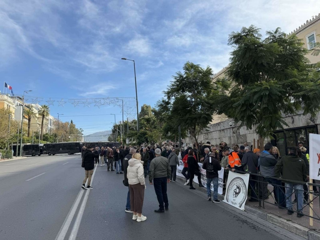 Δήμαρχοι, μεταξύ των οποίων ο Χάρης Δούκας και ο Στέλιος Αγγελούδης, έχουν συγκεντρωθεί έξω από τη Βουλή κατά τις κινητοποιήσεις της ΑΔΕΔΥ.