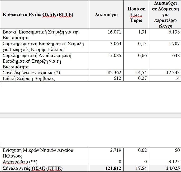 Επομένως, λαμβάνοντας υπόψη και την πληρωμή ύψους 1,6 εκατ. ευρώ που έγινε στις 03.10.2025, συνολικά από 01.09.2025 έχουν πληρωθεί 153 εκατ. ευρώ. Στα ποσά αυτά, δεν περιλαμβάνονται οι αιτήσεις των υποψηφίων δικαιούχων που ελέγχονται από τη Διεύθυνση Αντιμετώπισης Οργανωμένου Εγκλήματος.