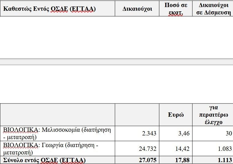 - Πληρωμές Βιολογικής Γεωργίας και Μελισσοκομίας Εντός ΟΣΔΕ: