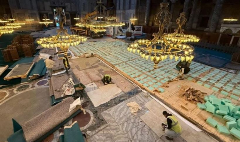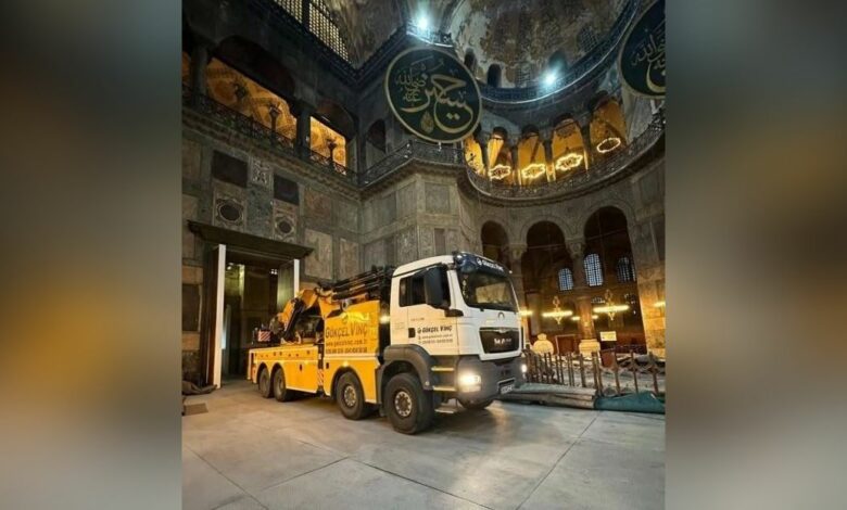 Οργή για τις εικόνες με γερανούς και φορτηγά μέσα στην Αγία Σοφία: Ερωτήματα για την ασφάλεια του ναού