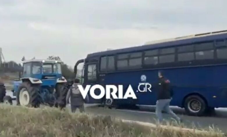 Σέρρες: Αστυνομική κλούβα πέφτει με φόρα πάνω σε τρακτέρ, σε μπλόκο αγροτών (Video)