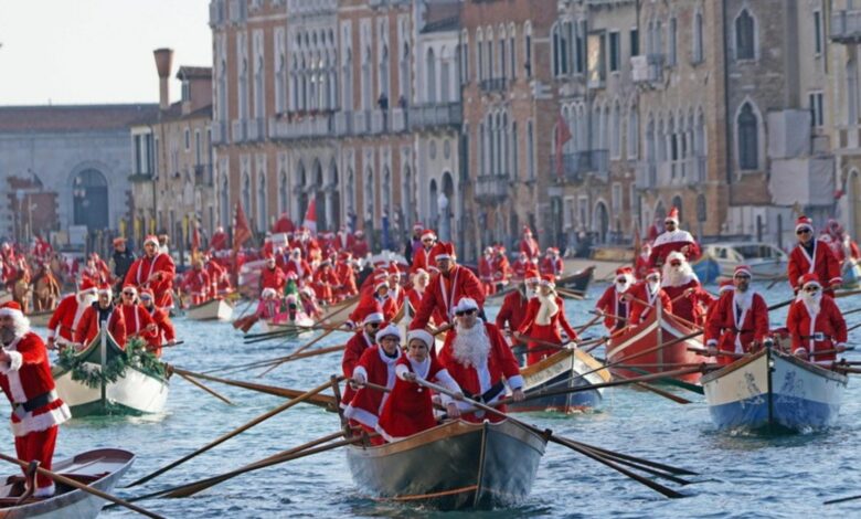 Στα κανάλια της Βενετίας ξεχύθηκαν εκατοντάδες Άη Βασίληδες, που άφησαν τα έλκηθρά τους για τις…