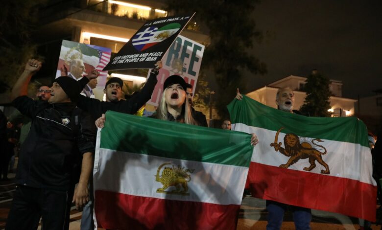 Συγκέντρωση συμπαράστασης στον ιρανικό λαό πραγματοποιούν έξω από την πρεσβεία του Ιράν στο Ψυχικό Ιρανοί…