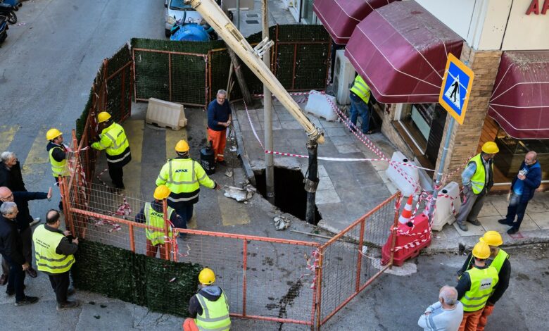 Η τρύπα έχει πέντε μέτρα εμβαδόν και σημαντικό βάθος, ενώ την ώρα που άνοιξε «ρούφηξε» και μια κολώνα φωτισμού.