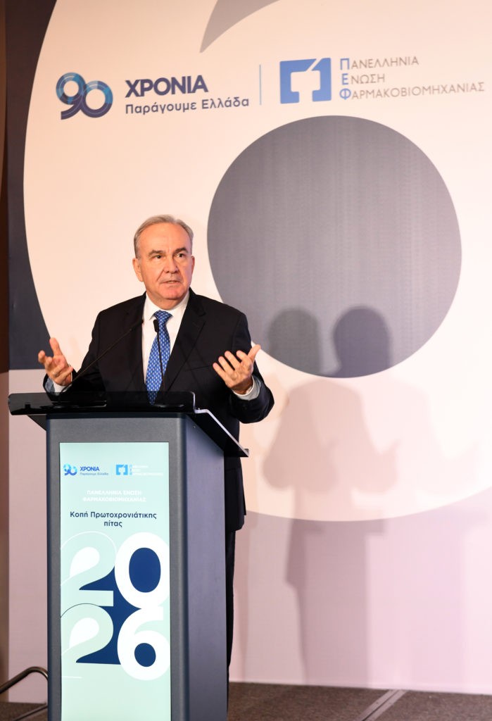 Σε ένα περιβάλλον έντονων γεωπολιτικών και γεωοικονομικών ανακατατάξεων, όπου η ασφάλεια εφοδιασμού και η επάρκεια φαρμάκου αναδεικνύονται σε κρίσιμα ζητήματα εθνικής σημασίας, ο πρόεδρος της Πανελλήνιας Ένωσης Φαρμακοβιομηχανίας (ΠΕΦ) Θεόδωρος Τρύφων, έθεσε με σαφήνεια τις νέες προτεραιότητες για τη φαρμακευτική πολιτική, κατά την κοπή της Πρωτοχρονιάτικης Πίτας παρουσία κορυφαίων εκπροσώπων της Πολιτείας και των θεσμικών φορέων της χώρας.