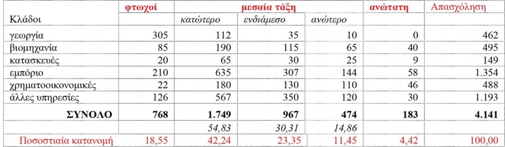 Πίνακας 3: Απασχόληση κατά κλάδο και  κοινωνική τάξη στην Ελλάδα το 2022 (σε χιλιάδες άτομα)